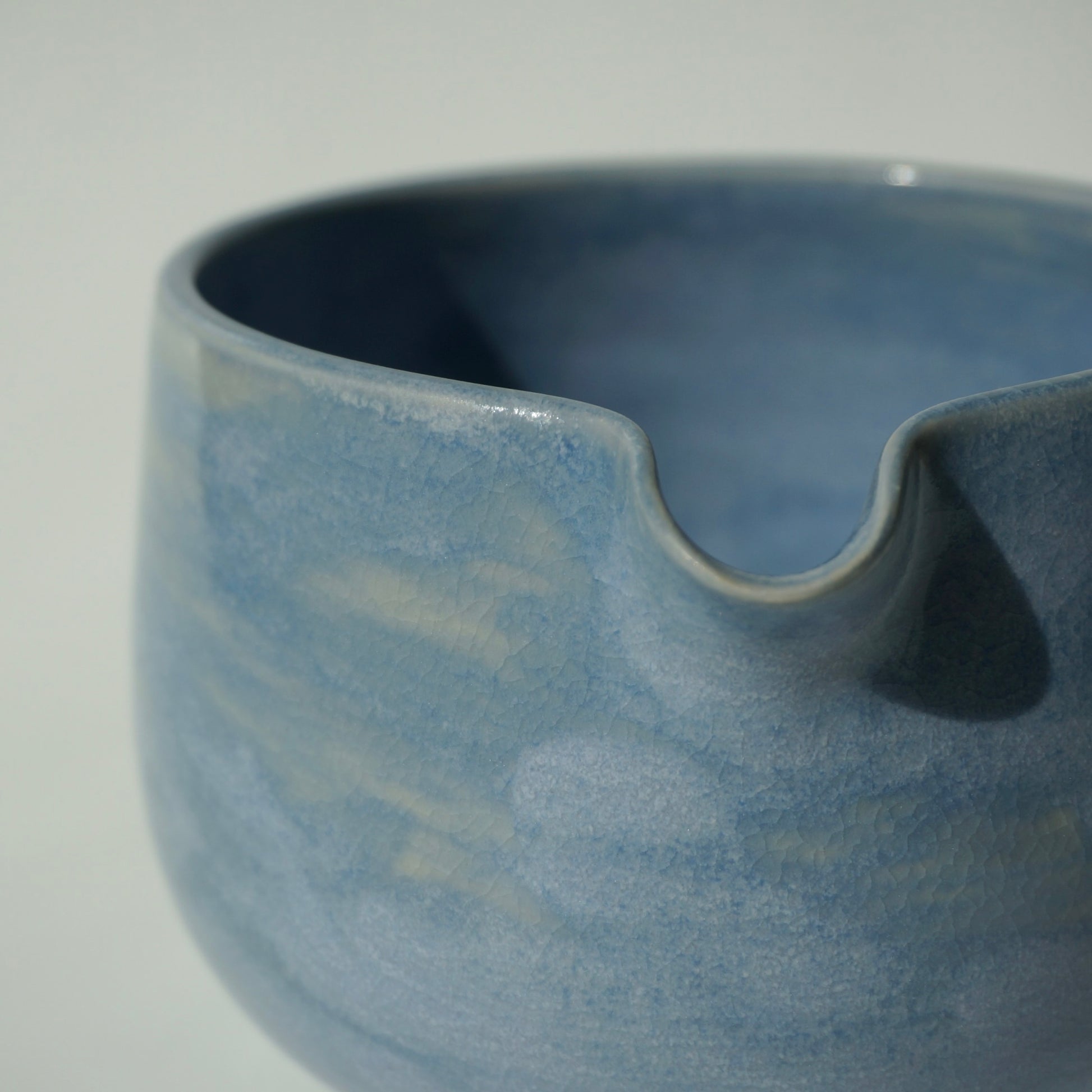 Glazed in a glossy crackled blue glaze, hand painted to create cloud-like patches. *This bowl has more periwinkle hues than the original blue cloud.