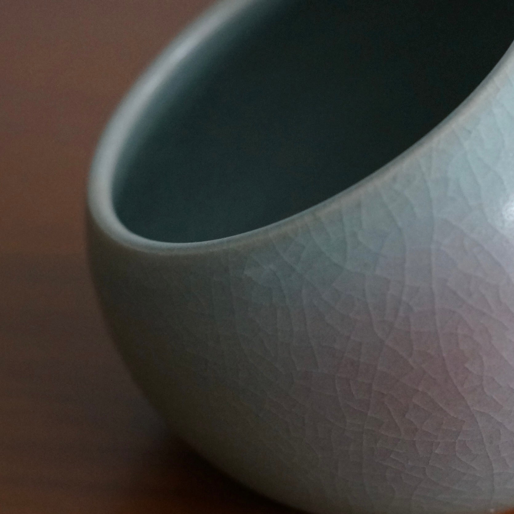 Dipped in a lustrous, crackled celadon glaze. This distinctive blue-green glaze is an ode to Korean celadons or "cheong-ja".